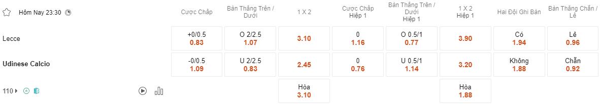 Lecce đã thể hiện sự cải thiện đáng kể dưới thời HLV Luca Gotti với việc bất bại 6/7 trận gần đây tại Serie A. Sự tỏa sáng của bộ đôi tấn công Nikola Krstovic và Roberto Piccoli đã giúp Lecce tìm lại sức mạnh. Điều này giúp Lecce có sự tự tin cao trong việc bảo vệ vị thế của họ trước Udinese. Cửa cược của họ đã giúp bet thủ vượt ải thành công trong 5/7 lần mở kèo gần đây.
