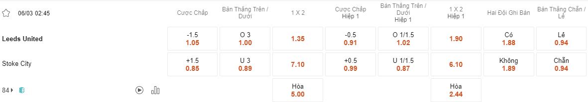 Leeds khi đá trên sân nhà Elland Road, thường cho thấy bản lĩnh và sức mạnh tấn công ấn tượng. Họ sẽ quyết tâm tìm kiếm bàn thắng sớm để lấy thế trận. Stoke mặc dù cũng không dễ chịu, nhưng sự thăng trầm của họ trên sân khách có thể là một điểm yếu mà Leeds sẽ tận dụng. Do đó, việc chọn Leeds thắng kèo trong hiệp 1 có thể là một lựa chọn đáng tin cậy cho người chơi.