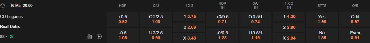 Soi kèo châu Á Leganes vs Betis