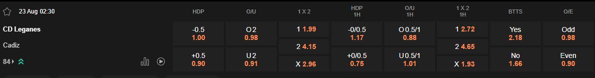 Soi kèo hiệp 1 Leganes vs Cadiz