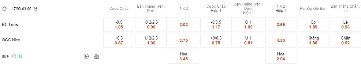 Soi kèo châu Á Lens vs Nice