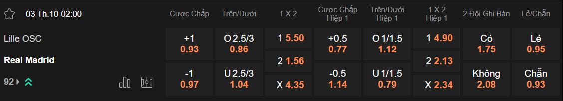 Theo tỷ lệ kèo nhà cái châu Á hôm nay, Real Madrid đang ở cửa trên và nhận mức chấp là 1. Như vậy, ngay cả khi chỉ thắng với cách biệt 1 bàn, họ vẫn không khiến các nhà đầu tư mất vốn. Căn cứ vào tình hình hiện tại, khả năng Kền kền trắng giành chiến thắng rõ ràng rất cao. Lille có thể đã cho thấy một số tín hiệu tích cực nhưng chưa đủ để tạo nên bất ngờ trước đối thủ lớn.