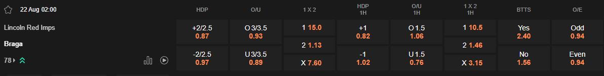 Braga thường nhập cuộc rất nhanh và tạo lợi thế ngay từ hiệp một. Trước CFR Cluj, họ đã dẫn 2-0 chỉ sau 45 phút. Với Lincoln – đội yếu hơn rất nhiều – kịch bản này hoàn toàn có thể lặp lại. Hàng thủ của Lincoln vốn đã bộc lộ nhiều khoảng trống khi gặp các đối thủ mạnh. Trong khi Braga sở hữu những cầu thủ tấn công giàu tốc độ và khả năng tận dụng cơ hội. Kèo Braga -0.75 hiệp 1 mang đến lựa chọn an toàn, bởi chỉ cần thắng tối thiểu 1-0 là đã ăn nửa kèo. Chưa kể, khả năng Braga dẫn 2 bàn trước giờ nghỉ là rất cao. Đây sẽ là điểm tựa để đội khách dễ dàng định đoạt trận đấu.