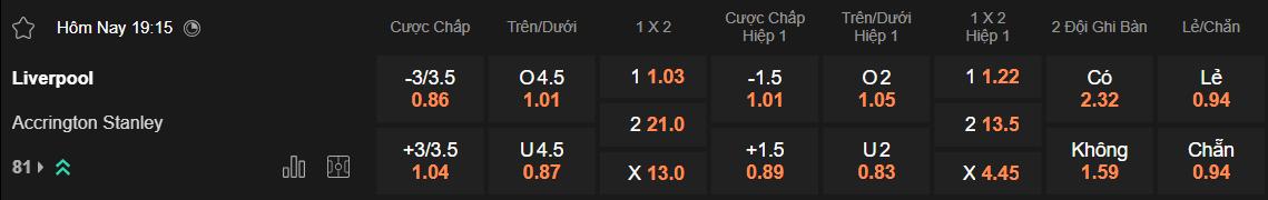 Soi kèo hiệp 1 Liverpool vs Accrington
