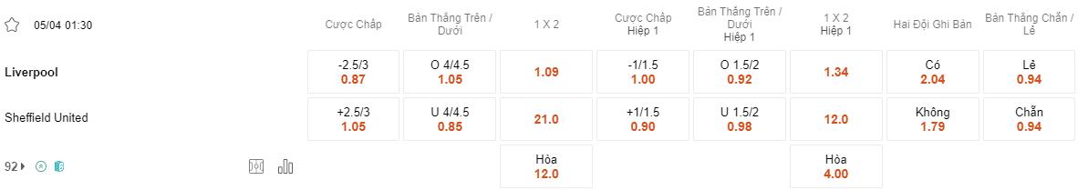Liverpool mặc dù là đội bóng mạnh mẽ, nhưng họ thường không thể hiện đúng sức ở hiệp 1 trong các trận đấu gần đây. Cửa cược của họ đã khiến bet thủ ôm hận trong 4 lần mở kèo gần nhất tại Ngoại hạng Anh. Sheffield United dù đang gặp khó khăn trong mùa giải này, nhưng họ thường nhập cuộc khá chắc chắn. Chiến thắng kèo trong 7/8 lần hành quân vừa qua là minh chứng rõ ràng nhất.