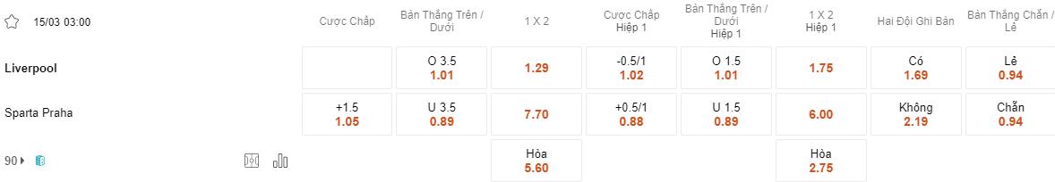 Soi kèo hiệp 1 Liverpool vs Sparta Prague