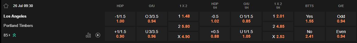 Soi kèo châu Á Los Angeles vs Portland Timbers