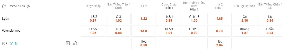 Soi kèo châu Á Lyon vs Valenciennes