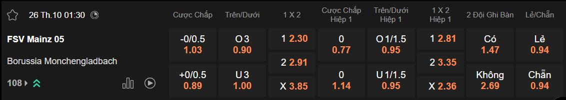 Soi kèo Mainz vs Gladbach ngày 26/10