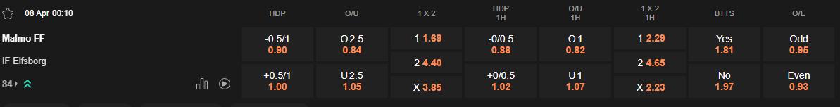 Dự đoán tỷ số Malmo vs Elfsborg