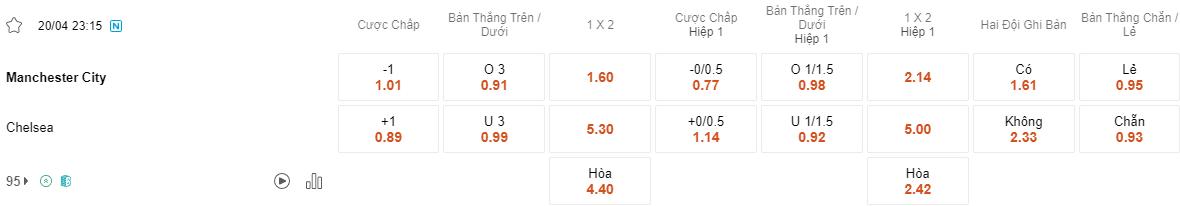 Man City đã thể hiện phong độ ấn tượng trong mùa giải này. Họ cũng có thành tích ấn tượng trong hiệp 1 khi thường xuyên tạo ra sức ép từ đầu trận. Cửa cược của họ đã giúp bet thủ vượt ải thành công trong 2 lần mở kèo gần đây tại giải đấu. Trong khi đó, Chelsea thường xuyên gặp khó khăn trong việc bắt kịp tốc độ nhập cuộc của The Citizens trong mỗi lần chạm mặt.