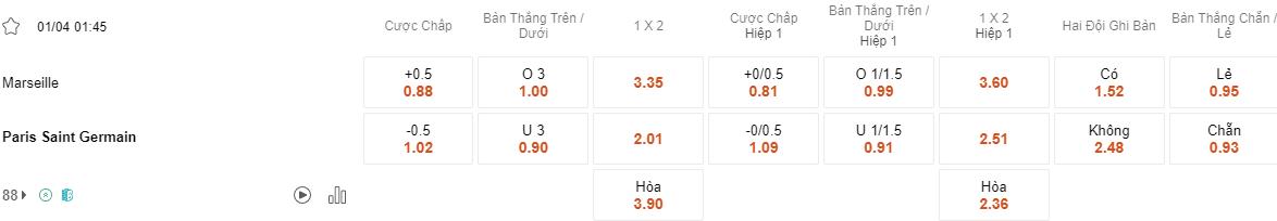 Soi kèo châu Á Marseille vs PSG