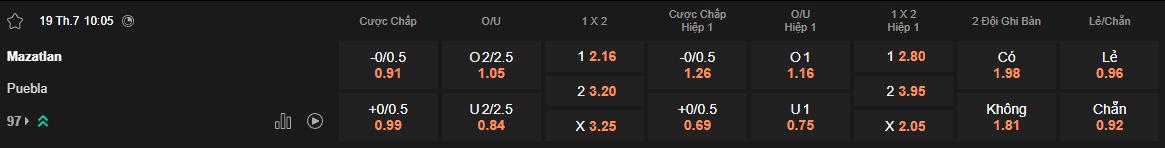 Soi kèo hiệp 1 Mazatlán vs Puebla