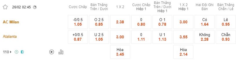 Soi kèo Milan vs Atalanta lúc 2h45 ngày 26/2/2024