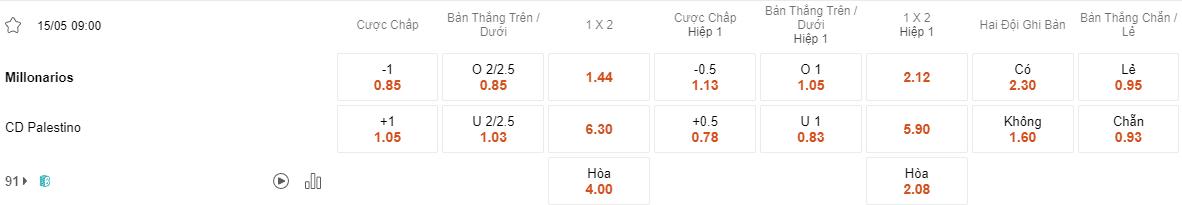 Soi kèo châu Á Millonarios vs Palestino