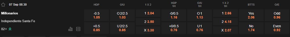 Soi kèo hiệp 1 Millonarios vs Santa Fe