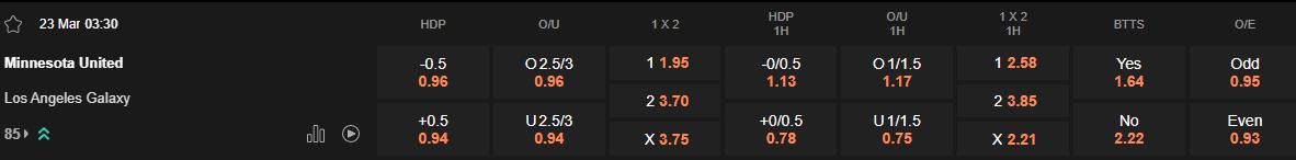 Soi kèo hiệp 1 Minnesota vs LA Galaxy