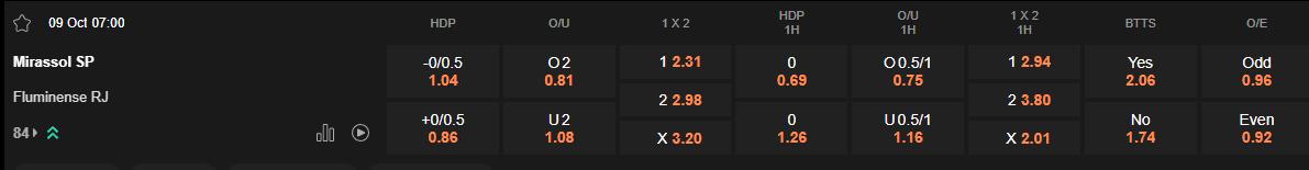Soi kèo tài xỉu Mirassol vs Fluminense
