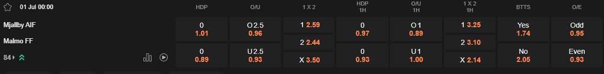 Soi kèo hiệp 1 Mjallby vs Malmo