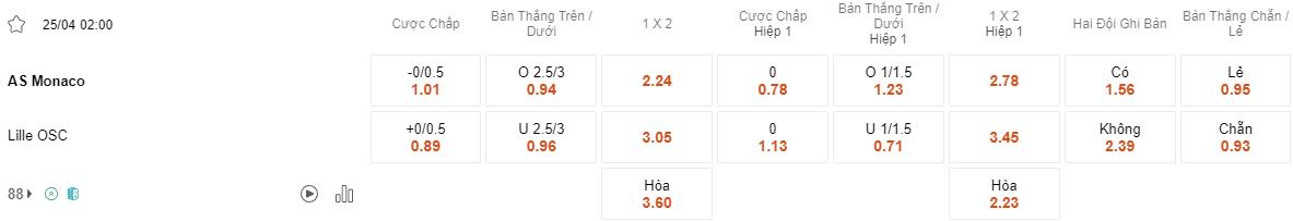 Sự tự tin của Lille được tăng cao bởi việc họ đã giành chiến thắng trước Monaco trong cuộc đối đầu gần nhất. Đây cũng là chiến thắng kèo thứ 5 của đội bóng này trong 7 lần chạm trán trước đó. Với phong độ ấn tượng trong những trận đấu quan trọng và mong muốn sâu sắc để tiếp tục cuộc đua cho suất dự Champions League, Lille có thể sẽ là một đối thủ đáng gờm cho Monaco.