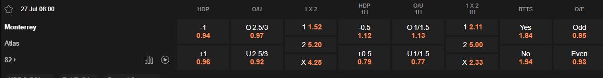 Monterrey thường nhập cuộc rất mạnh mẽ khi chơi trên sân nhà. Trong cả 2 trận gần nhất tại Estadio BBVA, họ đều ghi bàn ngay trong hiệp 1. Đó là nhờ khả năng pressing tầm cao và các tình huống phối hợp biên hiệu quả. Việc sở hữu nhiều cầu thủ kỹ thuật, tốc độ giúp Monterrey dễ dàng khai thác sơ hở nơi hàng phòng ngự của đối phương. Về phía Atlas, họ tỏ ra khá chậm chạp trong khâu nhập cuộc. Ở 3/4 trận sân khách gần nhất, họ đều bị thủng lưới sớm và rơi vào thế phải bám đuổi. Trong bối cảnh đó, việc Monterrey dẫn trước trong hiệp 1 là rất dễ xảy ra.