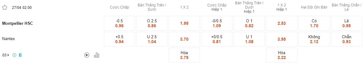 Soi kèo hiệp 1 Montpellier vs Nantes