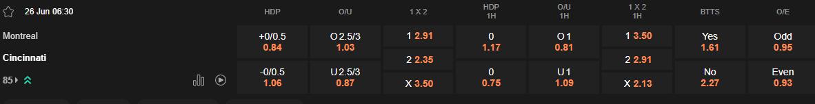 Soi kèo hiệp 1 Montreal vs Cincinnati