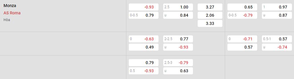 Bên phía đội chủ nhà, Monza đang có phong độ thi đấu khá tốt trong thời gian gần đây. Theo thống kê cho thấy, sau 2 trận ra quân gần nhất, họ đều giành được chiến thắng. Được chơi trên sân nhà, tuy nhiên, phải tiếp đón các vị khách Roma, đây thực sự là một thử thách khó khăn. Do đó, các chuyên gia đang đánh giá cao Roma hơn trong trận kèo này.
