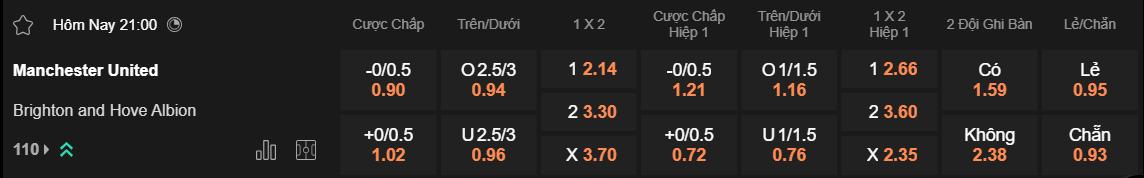 Theo tỷ lệ kèo nhà cái châu Á hôm nay, MU đang ở cửa trên và nhận mức chấp là 1/4. Với sự hưng phấn đang có cùng điểm tựa sân nhà, họ hứa hẹn sẽ có thể làm chủ trận đấu này. Thành tích tại Old Trafford của Qủy đỏ không hề tồi một chút nào. Cụ thể, họ giành 7 chiến thắng, hòa 1 và thua 3 trong 11 trận gần nhất tại đây. Tính riêng tại Ngoại hạng Anh, Brighton không thắng ở 4/5 chuyến hành quân gần nhất.