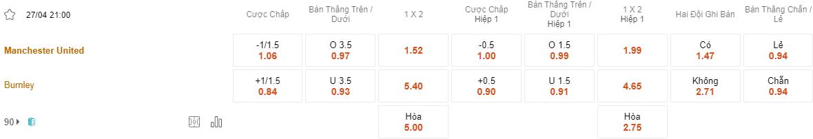 Soi kèo MU vs Burnley lúc 21h00 ngày 27/4/2024