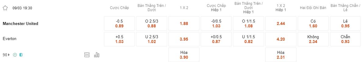 Tỷ lệ kèo MU vs Everton