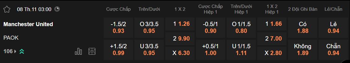 Soi kèo châu Á MU vs PAOK