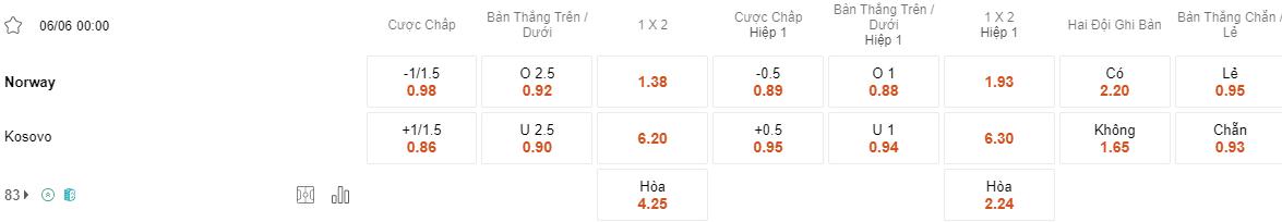 Soi kèo hiệp 1 Na Uy vs Kosovo