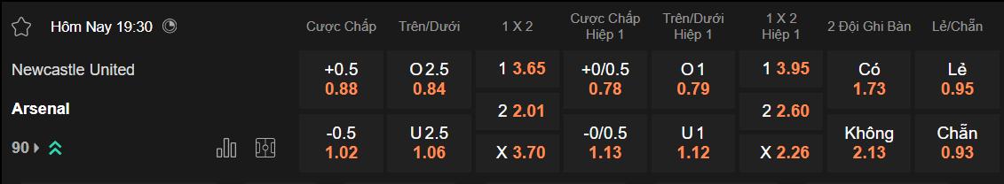 Tỷ lệ tài xỉu hiệp 1 của trận đấu này đang là 1. Chỉ cần có 1 pha lập công, người theo cửa Tài sẽ có cơ hội thắng kèo lớn hơn và tất nhiên là hạn chế rủi ro. Đáng chú ý, khả năng trận đấu này có bàn thắng ngay trong 45 phút đầu rất cao. Trong 3 trận gần nhất Newcastle tham dự, hiệp 1 luôn có bàn thắng. Với Arsenal, họ lại luôn ghi bàn ngay trong hiệp 1 ở 3 trận gần nhất của mình.