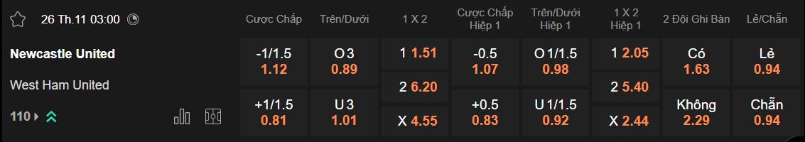 Theo tỷ lệ kèo nhà cái châu Á hôm nay, Newcastle đang ở cửa trên và nhận mức chấp là 1 1/4. Như vậy, chủ nhà cần giành chiến thắng với cách biệt ít nhất 2 bàn để giúp các nhà đầu tư có lợi nhuận. Kịch bản này hoàn toàn có thể diễn ra khi phong độ giữa 2 đội có sự trái ngược quá lớn. Đáng nói hơn, tất cả thất bại trên sân khách của West Ham kể từ đầu mùa đều có cách biệt nhiều hơn 2 bàn.