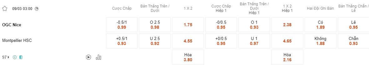 Soi kèo châu Á Nice vs Montpellier