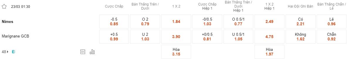 Dù Marignane có dấu hiệu khá khả quan, nhưng dựa trên sự cân nhắc về phong độ gần đây, Nimes được dự đoán sẽ là đội giành chiến thắng trong trận đấu này. Sự hỗ trợ từ khán giả nhà cũng có thể là yếu tố quyết định giúp Nimes có được kết quả tích cực.