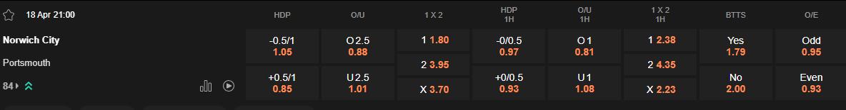 Mặc dù Portsmouth có thành tích sân khách khá tệ, nhưng mức kèo châu Á mà họ được chấp thường dao động từ +0.5 đến +0.75 sẽ là cơ hội tốt cho nhà đầu tư. Đặc biệt trong bối cảnh Norwich không thắng 3/4 trận sân nhà gần nhất. Lịch sử đấu cũng đang ủng hộ đội khách với 2 trận bất bại.