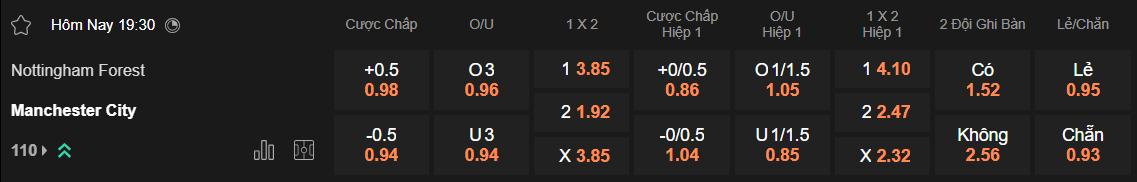 Tỷ lệ kèo Nottingham vs Man City