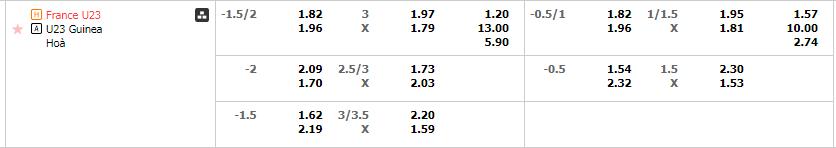 Soi kèo Châu Á Olympic Pháp vs Olympic Guinea