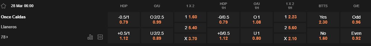 Once Caldas có xu hướng nhập cuộc tốt khi chơi trên sân nhà. Họ đã ghi bàn trong hiệp 1 ở 3/5 trận sân nhà gần nhất. Khi đối đầu với các đội bóng yếu hơn, họ thường cố gắng kiểm soát thế trận sớm. Llaneros lại có xu hướng khởi đầu chậm chạp. Họ không ghi bàn trong hiệp 1 ở 4/5 trận gần nhất và thường chơi thận trọng khi làm khách. Với sự vượt trội của Once Caldas, nhiều khả năng đội chủ nhà sẽ dẫn trước trong hiệp đấu đầu tiên.