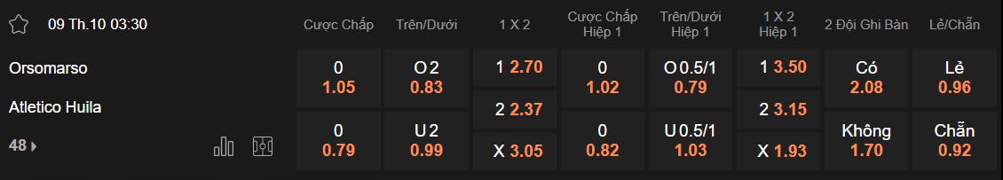 Chuyên gia của bongdaso vn cho rằng đầu tư vào cửa Xỉu là phương án hợp lý với tình hình hiện tại. Như đã đề cập, Orsomarso phòng ngự khá chắc chắn nhưng tấn công kém hiệu quả. Trong 6 trận gần nhất, họ chỉ để thủng lưới 3 bàn nhưng cũng chỉ ghi được 4 bàn. Về phía Huila, đội bóng này cũng không có hiệu suất nổ súng trên sân khách tốt với chỉ 4 bàn trong 4 trận gần đây.