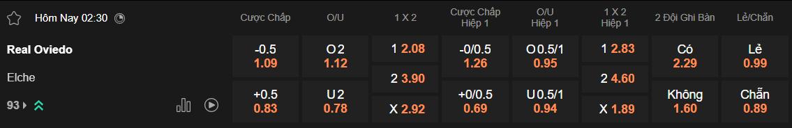 Soi kèo châu Á Oviedo vs Elche