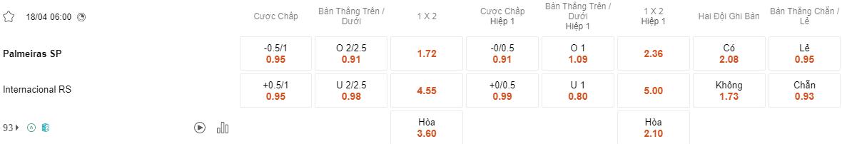 Soi kèo hiệp 1 Palmeiras vs Internacional