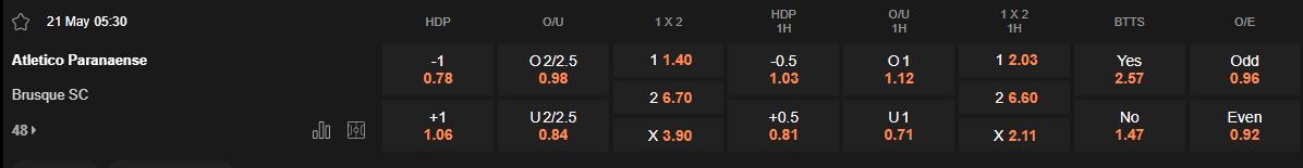 Ngược lại, Brusque đang cho thấy mình là một trong những đội bóng có khả năng vượt kèo tốt nhất ở giải đấu này, khi đã thắng kèo 8/10 trận gần nhất. Đội bóng này không chỉ biết cách duy trì sự chắc chắn trong phòng ngự mà còn rất hiệu quả trong việc tận dụng cơ hội phản công. Điển hình là trận hòa đáng nhớ trước chính Paranaense, một kết quả cho thấy họ có đủ sự tự tin và kinh nghiệm để tạo bất ngờ.