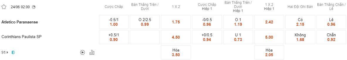 Soi kèo châu Á Paranaense vs Corinthians