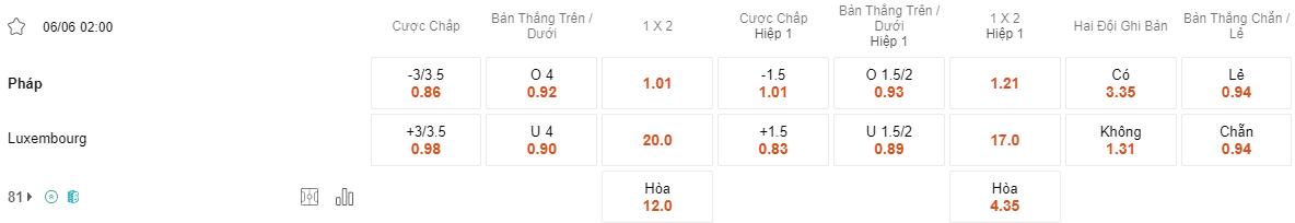 Soi kèo châu Á Pháp vs Luxembourg