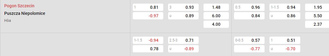 Trước khi trận này diễn ra, Pogon thường nhập cuộc thiếu chủ động. Khi mà có 3/5 lần ra quân gần nhất, họ không ghi bàn trong hiệp 1 trận đấu. Bên kia chiến tuyến, Puszcza lại chơi phòng ngự khá chắc chắn trong 45 phút đầu tiên. Với việc sau 6 trận gần nhất, họ không phải nhận bàn thua. Do đó, khả năng cao cửa dưới Puszcza sẽ là lựa chọn an toàn hơn tại kèo hiệp 1 trận này.