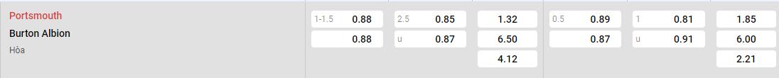 Soi kèo Châu Á Portsmouth vs Burton