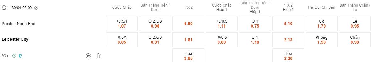 Trong 2 trận gần nhất, Leicester đều dẫn trước ở hiệp 1 và giành chiến thắng trong cả 2 trận đấu đó. Trong khi đó, Preston đã gặp khó khăn trong việc bảo vệ khung thành của họ trong hiệp 1 của các trận đấu gần đây. Họ đã để thủng lưới ít nhất một bàn trong 4 trận gần nhất. Theo đó, sự tự tin từ chiến thắng ấn tượng trước Southampton có thể giúp Leicester ghi bàn sớm trong giai đoạn đầu của trận đấu.